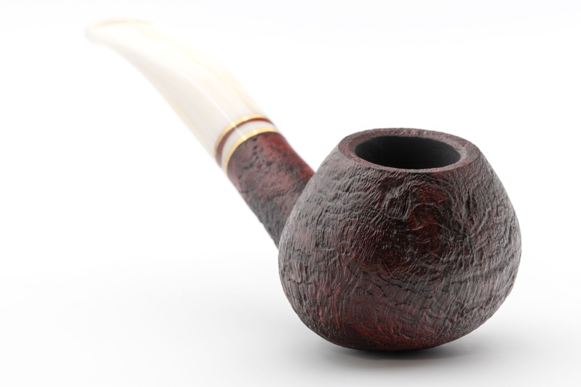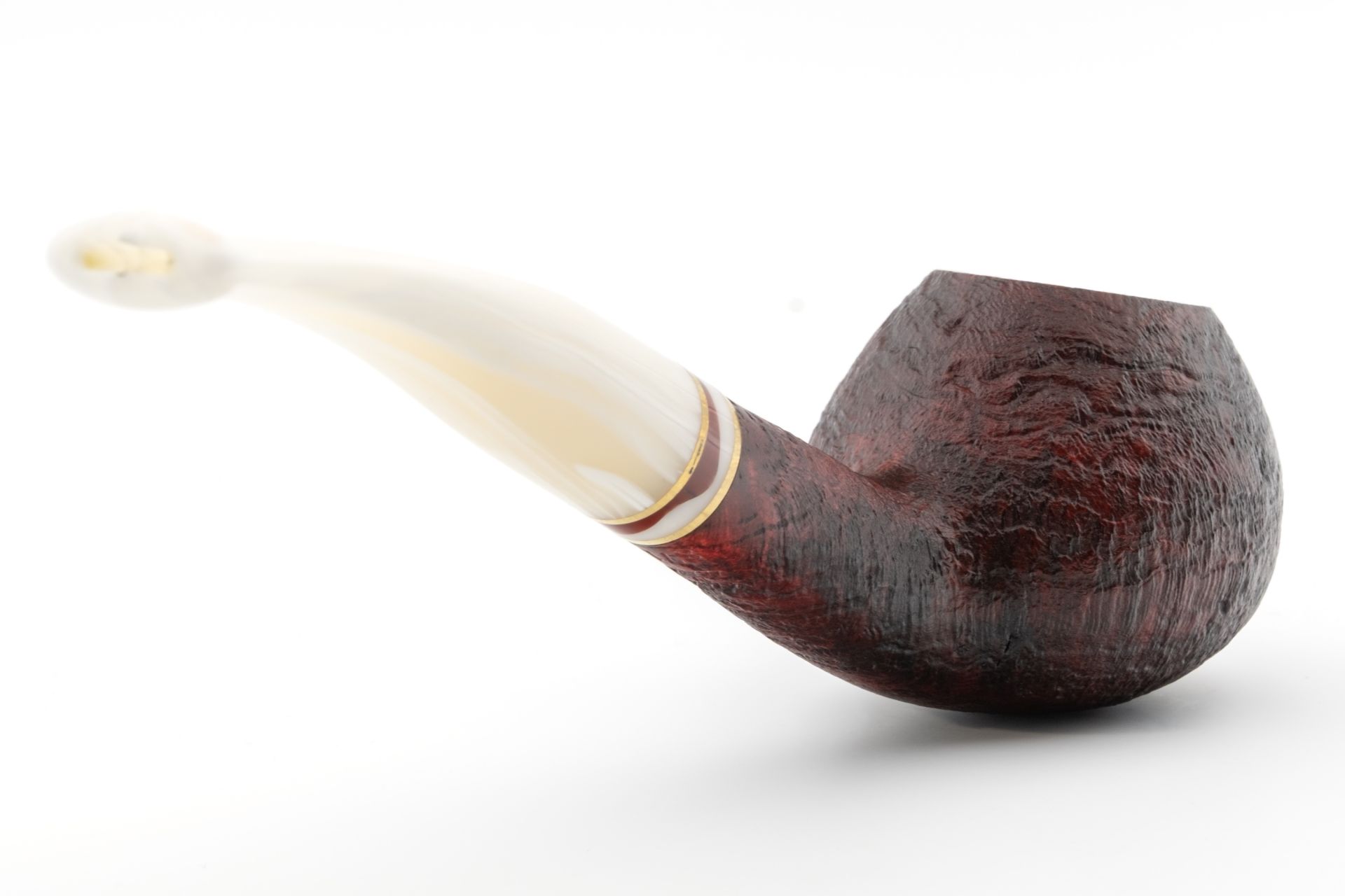 Bent classic briar pipe with sandblasted finish and elegant boxwood accent ring.