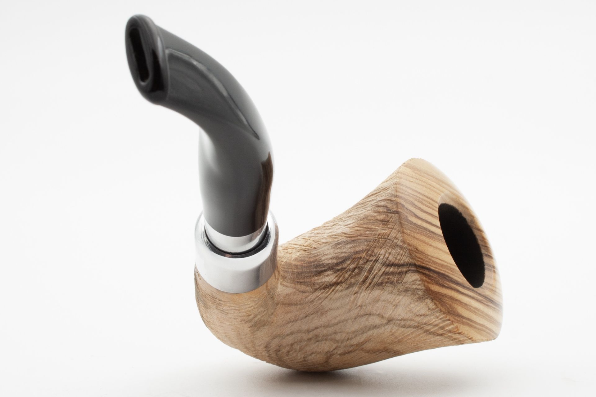 Drilling: 9 mm – Material: Olive Wood – Mouthpiece: Acrylic – Shape: Bent Calabash – Series: Carnyx –
