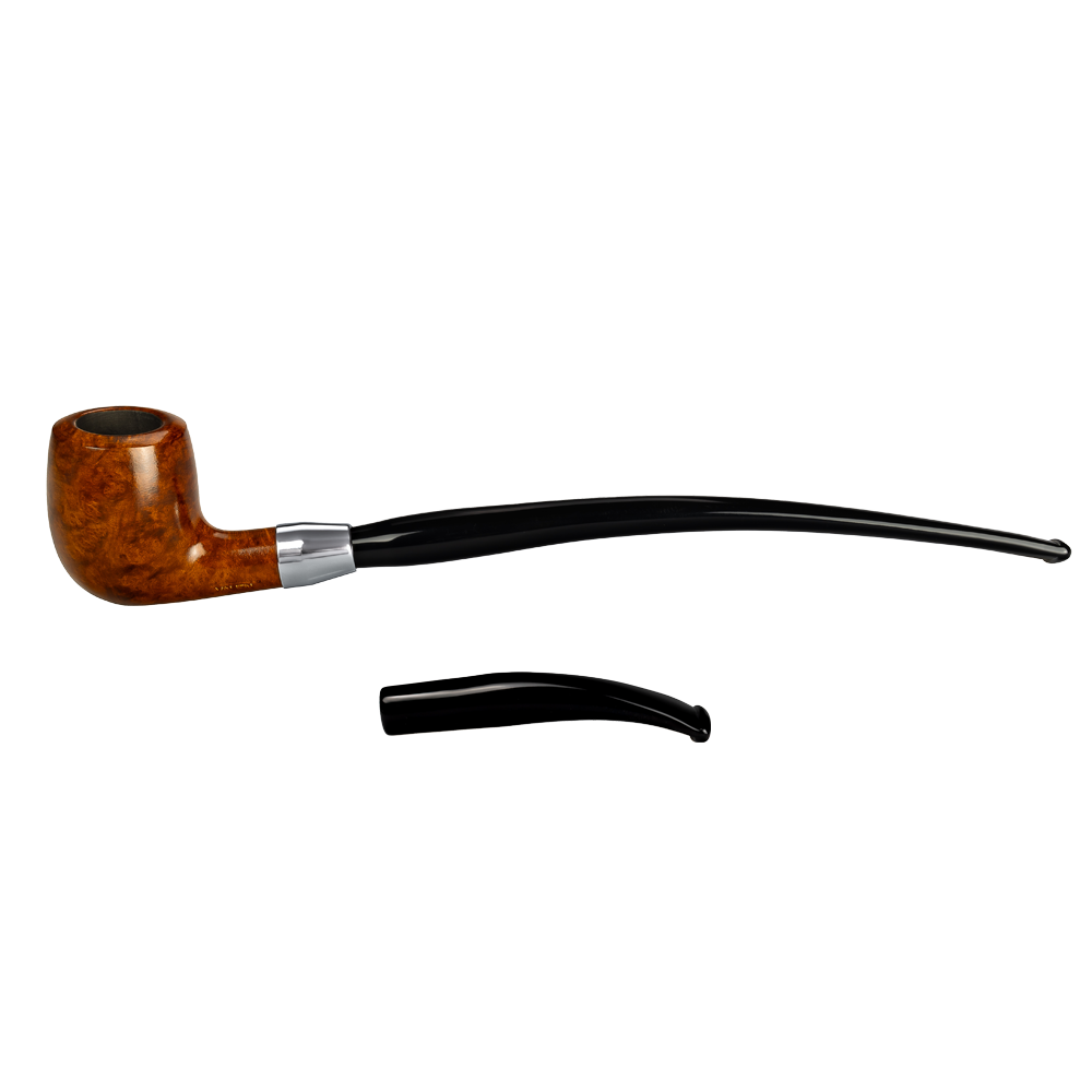 The Vauen Eames 1368 Churchwarden Pipe represents a refined blend of elegance and versatility. This stylish churchwarden pipe features a silver-coloured ring and can be equipped with either a long or short acrylic army-mount mouthpiece — giving you the freedom to choose between a graceful long silhouette or the classic compact form.