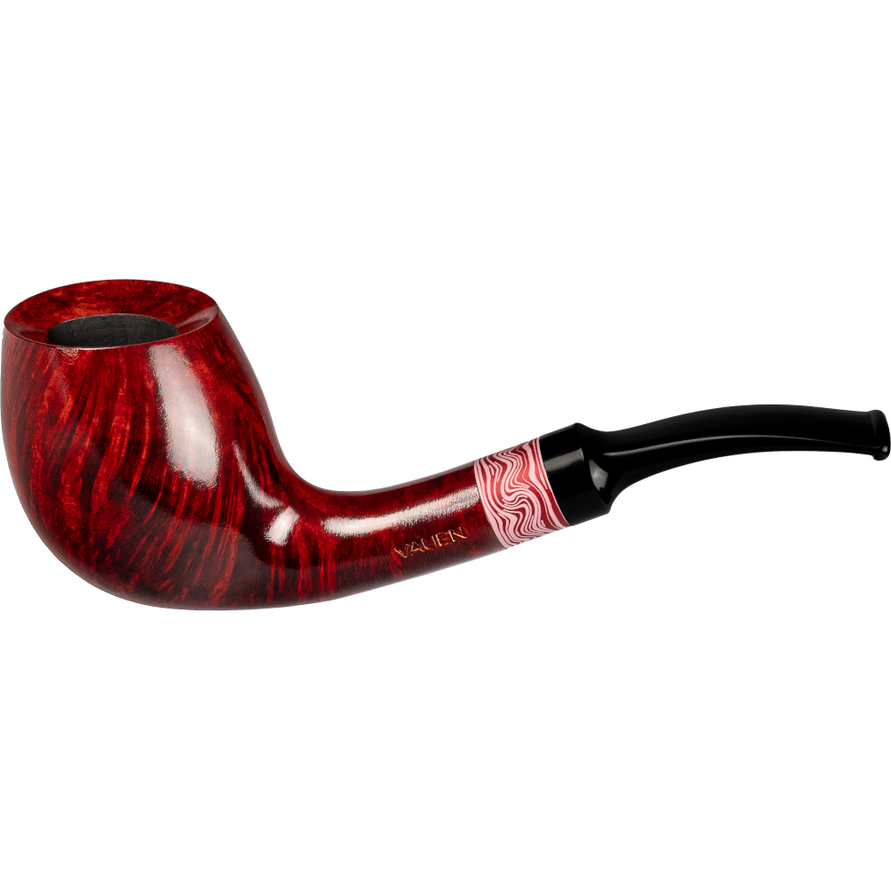 The Vauen Rosé 8371 Pipe stands out with its unique combination of colour, texture, and craftsmanship. This elegant pipe features a distinctive rose-coloured anodized aluminium ring, which has been laser-engraved to reveal a structure reminiscent of Damascus steel.