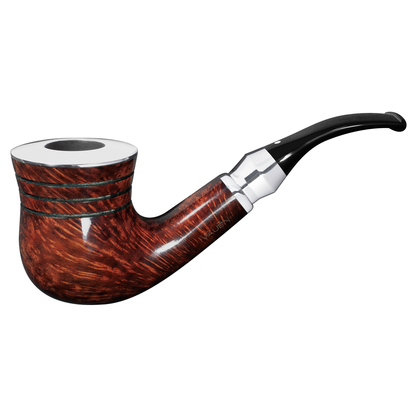 A polished, silver-colored bowl ring decorates the Vauen Shine 195 Pipe, while three finely inserted grooves emphasize the pipe’s balanced silhouette. The silver-colored ring-mouthpiece combination adds a touch of sophistication and ensures a comfortable feel when held or smoked.
